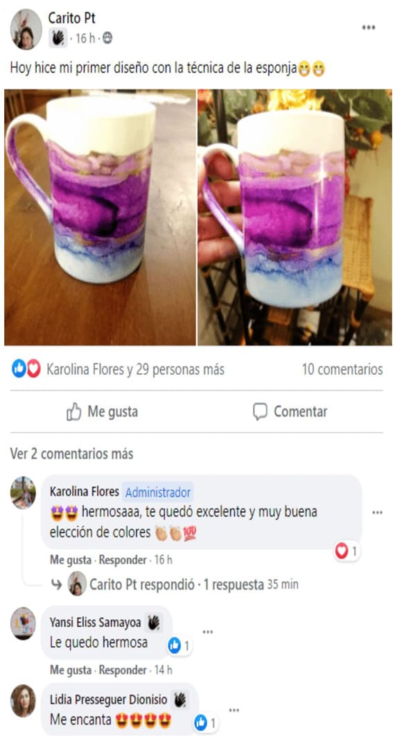 - Aprenderás todos los pasos para realizar una taza y un termo con la técnica de esponja.